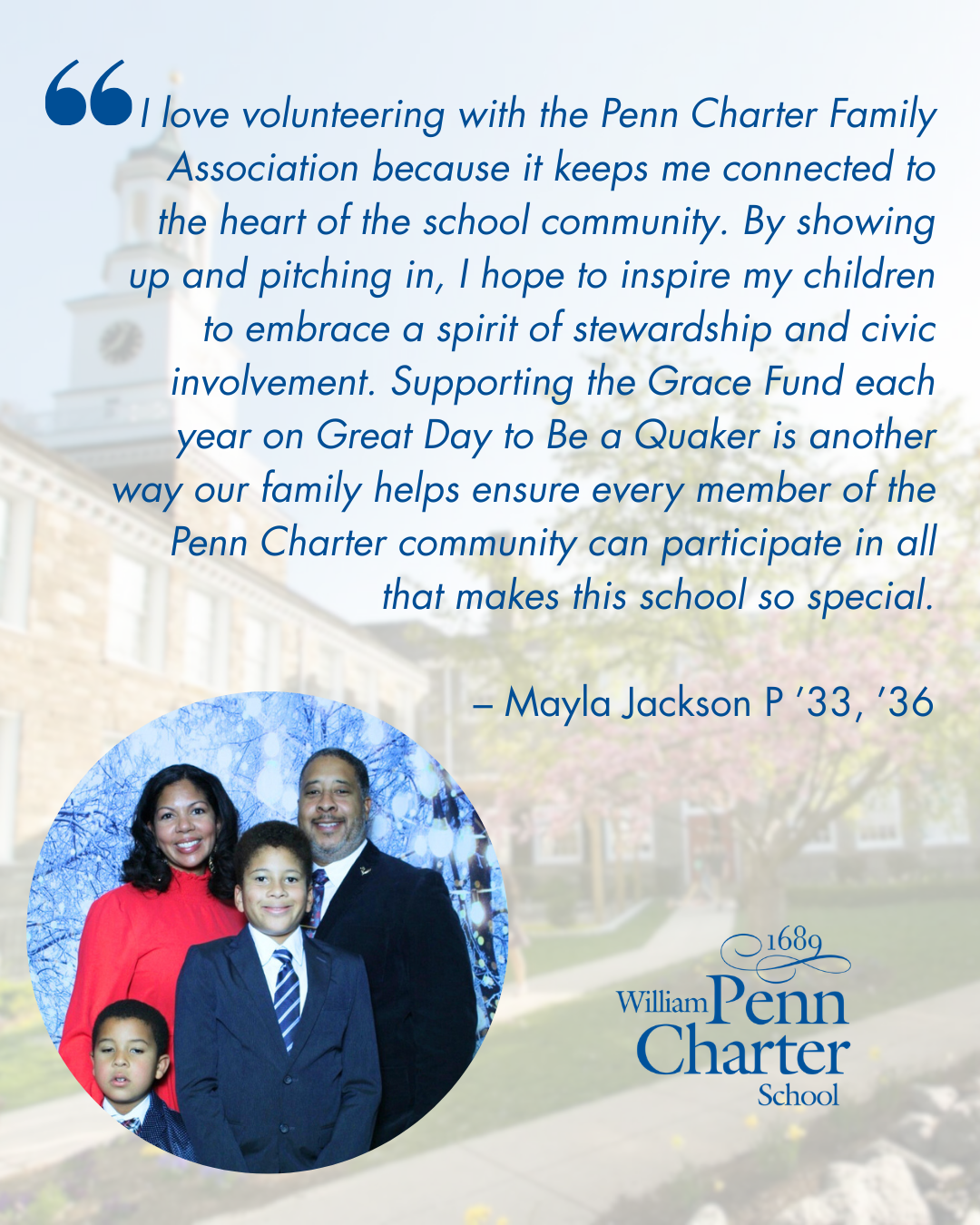 Great Day to Be a Quaker 2026 This year, the 11th annual Great Day to be a Quaker will be on March 11. This is our day of giving, which supports the Annual Fund and celebrates all things Penn Charter. Throughout the day, there will be lots of opportunities to engage with and celebrate the PC community, both in-person and online. On campus, we’ll have photo booths, a spirited dining hall menu and special themed treat, along with appreciation stations where students, faculty and staff can write thank you notes to Great Day donors. Please stay tuned for volunteer opportunities!